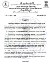 Fake Document Warning : भोपाल। सालों की मेहनत से NEET की तैयारी, अच्छा स्कोर भी कर लिया लेकिन बीच में कुछ शातिर तत्व फर्जी स्कोरकार्ड और जाली कागजात से घुसपैठ की कोशिश कर देंते है। इसी को लेकर केंद्रीय आयुष प्रवेश परामर्श समिति (एएसीसीसी) ने सत्र 2025-26 के लिए UG और PG काउंसलिंग में ऐसी बेईमानी पर सख्त चेतावनी जारी की है।