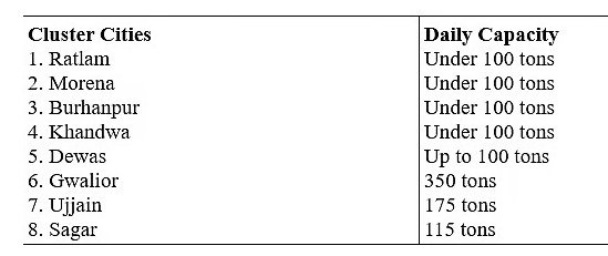 घरों, रेस्टोरेंट और बाज़ारों से निकलने वाले रोज़ाना निकलने वाले जैविक कचरे के प्रसंस्करण के लिए लगभग 15 छोटे शहरों को इन आठ क्लस्टर शहरों से जोड़ा गया है। उदाहरण के लिए, हरसूद और मुंदी को खंडवा ज़िला क्लस्टर के अंतर्गत रखा गया है।