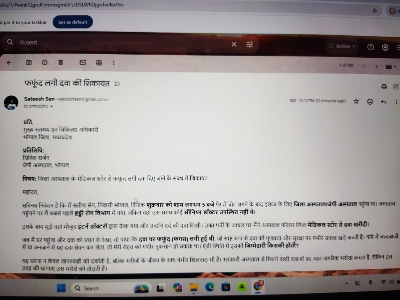 मरीज ने CMHO डॉ. मनीष शर्मा को ईमेल से शिकायत की। घटना से सरकारी अस्पतालों में दवा सप्लाई और गुणवत्ता पर सवाल उठ रहे हैं।